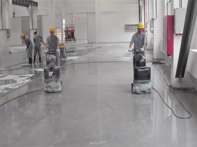 2、 将原地面水磨后(以水磨石机加水经粗磨、细磨、精磨)再施工混凝土密封固化剂,此法成型的地面不仅具有极佳的强度、硬度,还具有良好的平整度、金属般的光泽。但此方法施工周期较长。