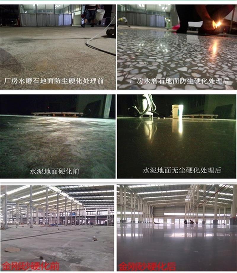 4,水泥混凝土硬化渗透剂地坪是一种混凝土密封、防尘、耐磨固化剂,无臭、无毒、能使混凝土坚固和防尘;能阻止水份 、油污渗透、碱化、风化等。