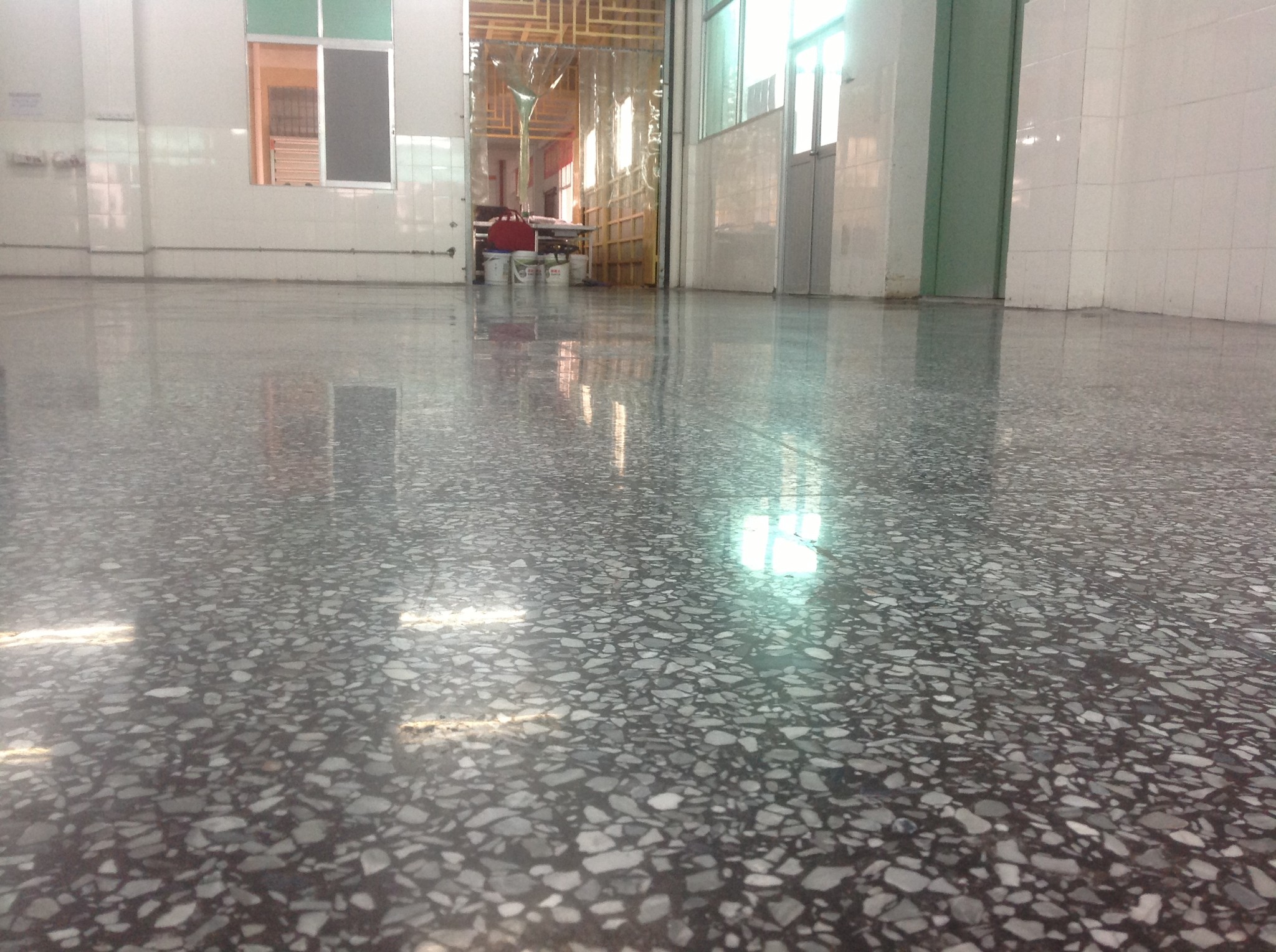 1、水磨石密封固化剂地坪标准施工(只需加硬、无需亮度)