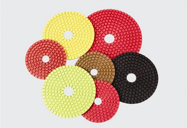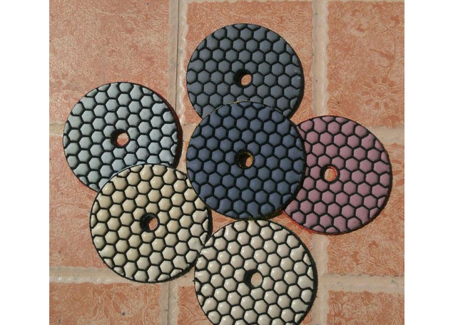 金刚石水磨片又称金刚石软磨片,是以金刚石为磨料,与复合材料结合制成的柔性加工工具,背面粘有尼龙搭扣布,粘扣在磨机的接头上,用于磨削,可对石材,陶瓷,玻璃,地砖等材料进行异型加工,适用于石材抛光,线条倒角,弧形板及异形石材加工,也可用于大理石、混凝、水泥地面、水磨石、微晶玻璃、人造石、地砖、釉面砖、玻化砖的异形加工,修复和翻新,具有磨削力强,耐用性好、软度好、清晰度、光泽度好,是理想的石材研磨工具,整个过程分为粗磨,细磨,精磨,抛光四个阶段,经加工的石材,光泽度达90°以上。规格:3寸、4寸、5寸、6寸、7寸、8寸; 厚度:2.5mm、3.0mm、3.5mm;